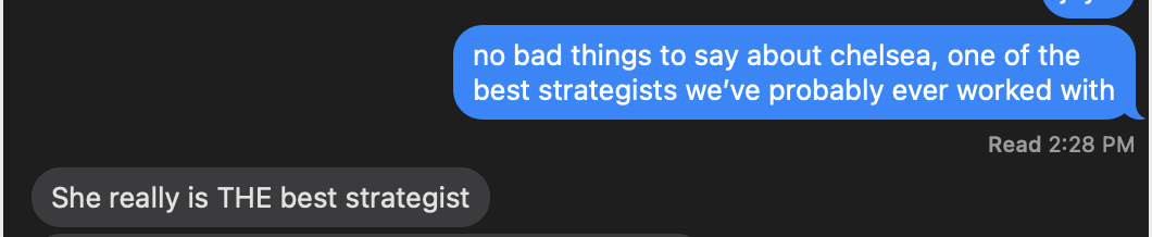 If you want to hire me, my experience and output reflects that of a group strategy director or strategy team lead. But I believe it’s my southwestern upbringing, perspective as a mother, experience as a state school grad and my pop-culture expertise that makes me a invaluable addition to the team.